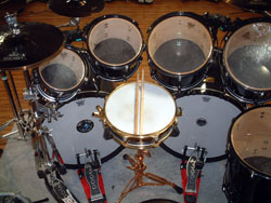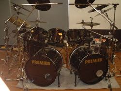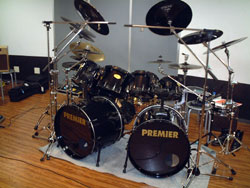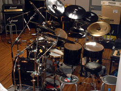 BD22'が2つ、TOM8'10'12'13'、F・TOM16'18'に金物いっぱい